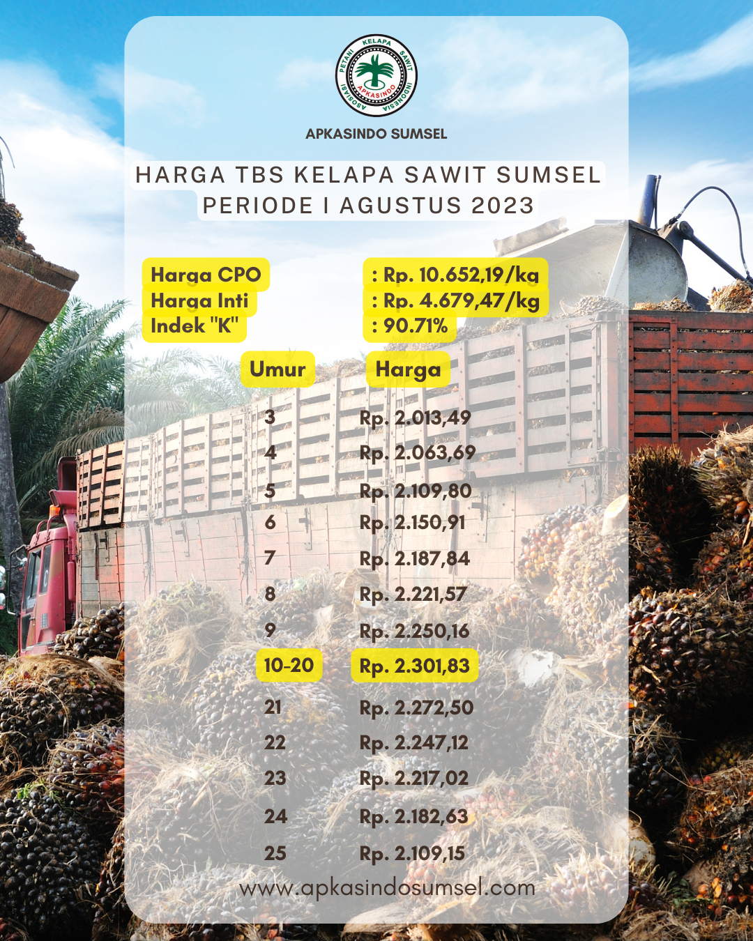 Harga TBS Sumsel Periode 2 Agustus 2023